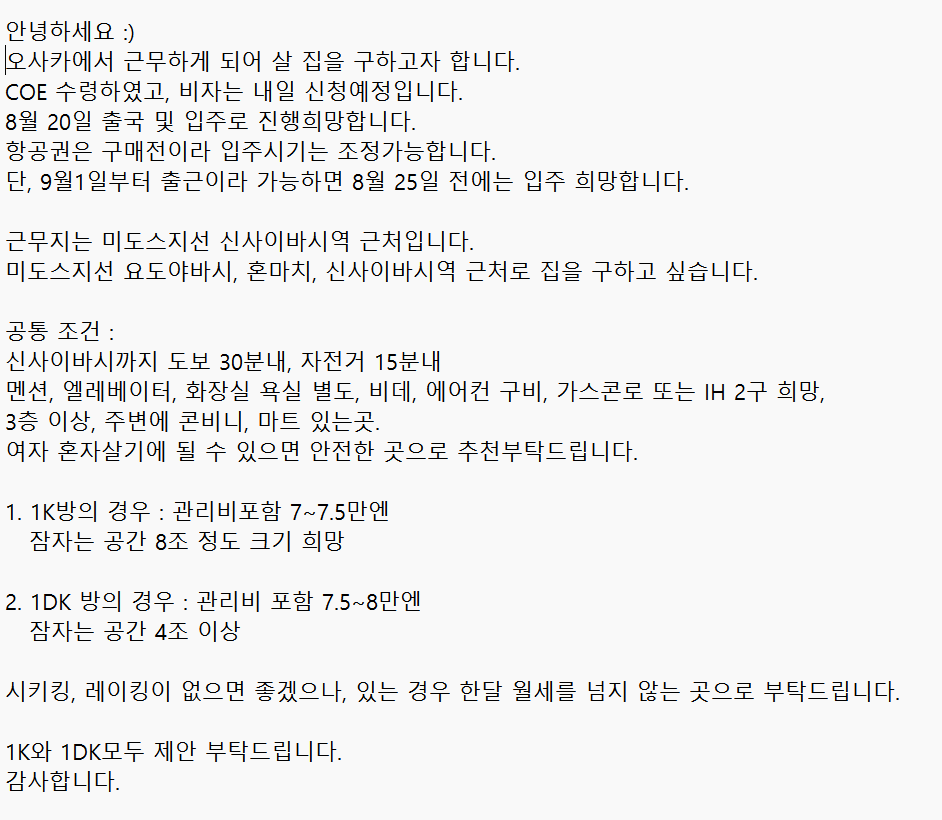 다음 글에서는 방 계약 확정 및 이삿짐 정리에 대해 다뤄볼게요! 일본 취업을 준비하시는 분들께 도움이 되기를 바랍니다. 응원해 주세요! 😊